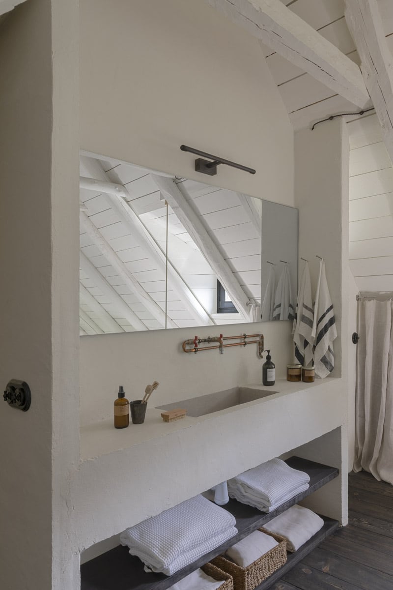 From the recovery of the beams to the solution for the framework made of simple wooden boards, everything in the main house carries the legacy of local traditions. Only the white that covers everything gives us the impression that it is a recent renovation.
