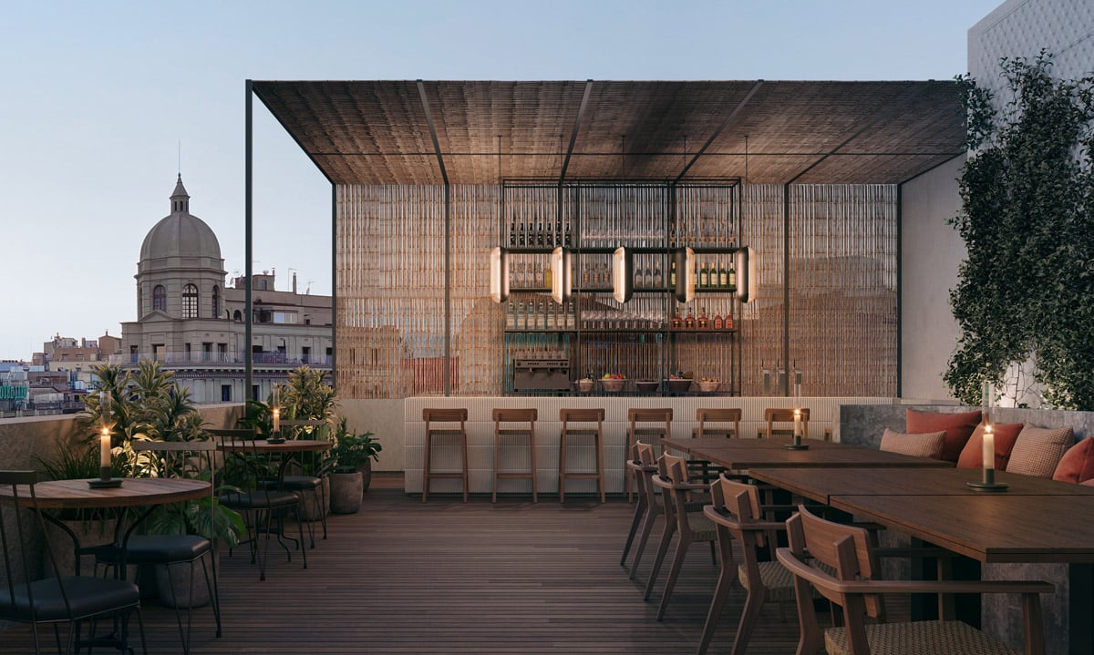 The rooms are located on the first, second, and third floors while the rooftop houses the main pool, an area with deck chairs, a bar, and a restaurant and chillout area open to the public for dinner.